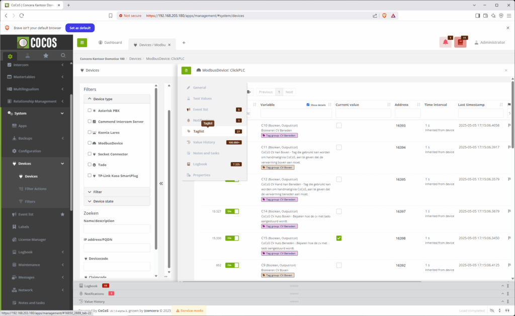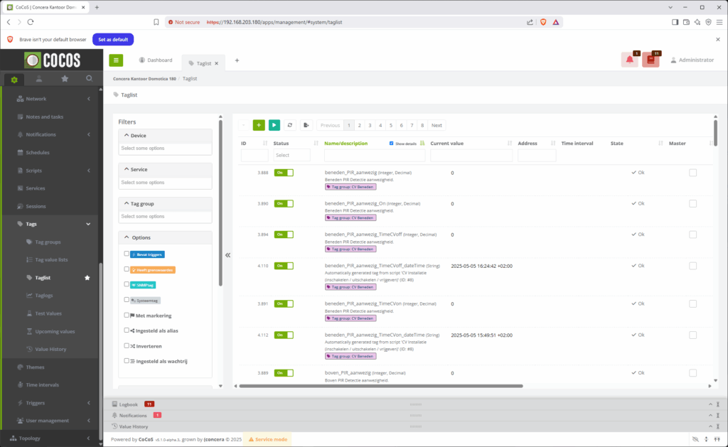 Tags can be found in the system/tags menu and in the taglist of an device: